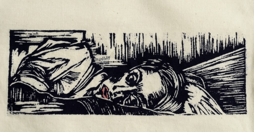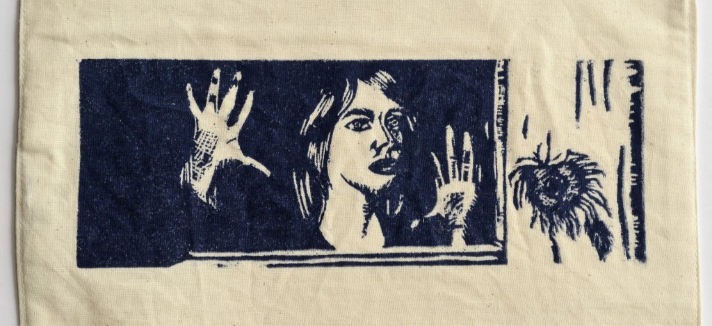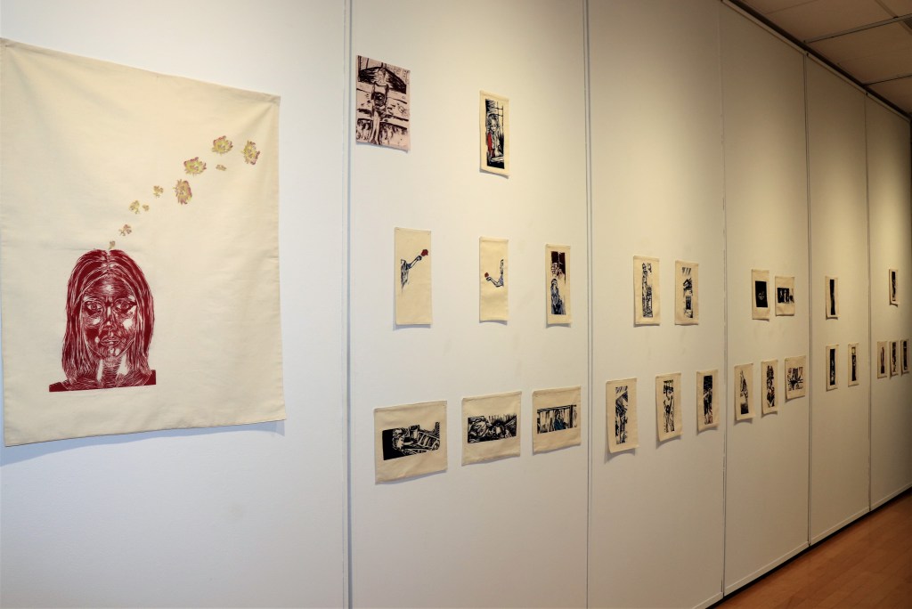 LIFE WHILE YOU WAIT, Installation, woodcut prints on textile.