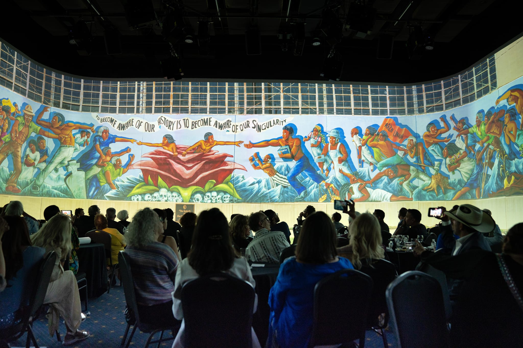 Curated by the Center for Mexican American Studies at the University of Houston, Latino cARTographies is an interactive and portable digital experience that displays the work of more than 180 Latino visual and performing artists from around the Houston area. With just a swipe of a finger, users can navigate a 75-inch interactive and bilingual wall mounted display board that features 2,000 pieces of art, 17 art organizations, and 80 local landmarks that all speak to the importance of Houston’s Latino history. Told through narrative text, images, videos, maps, music, and QR codes, users can scroll through Houston’s many diverse neighborhoods while reading about a piece of art and its artist on a pop-up screen.