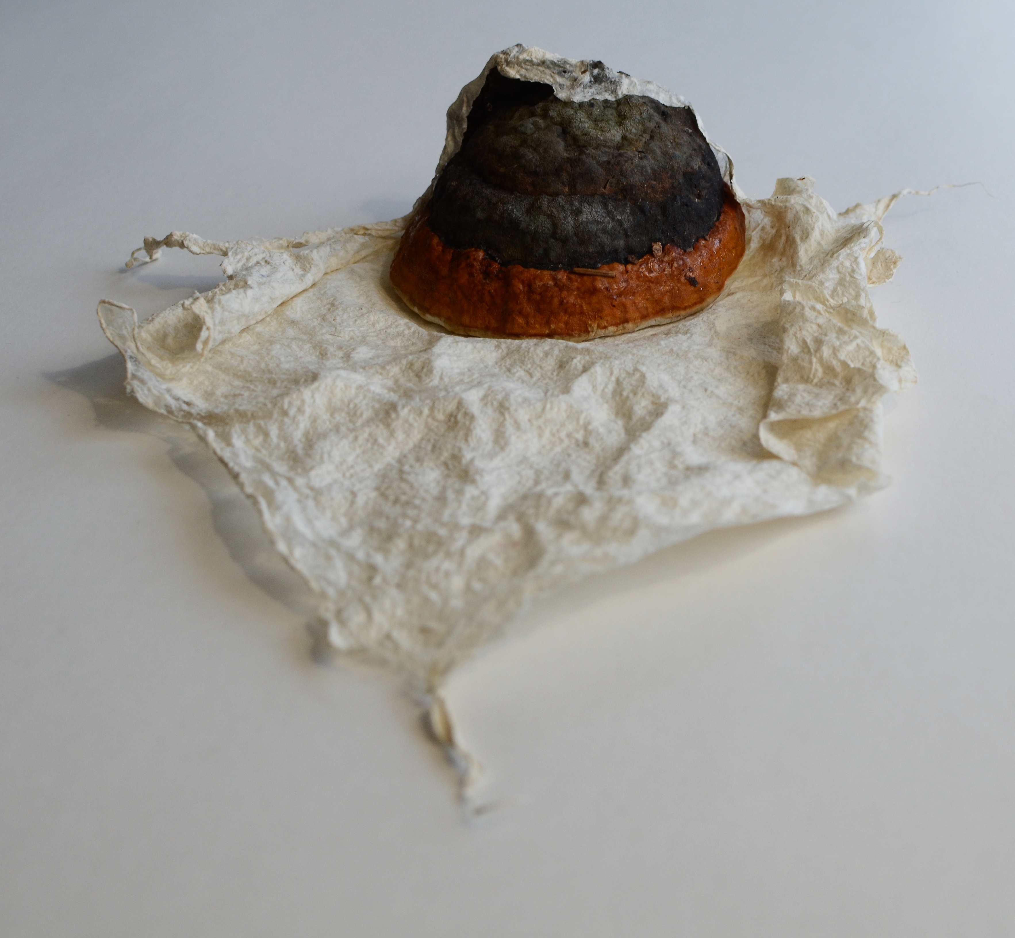 dsc_9140 ← Previous Next → POLYPORES I – XI: Alone, Anger, Beginning, Close, Courage, Despair, Forgiveness, Gratitude, Memory, Self-knowledge, Touch, book objects, m.m. (fungi, handmade papers, bible pages, hemp, stitches, handwriting), multiple dimensions, 2022