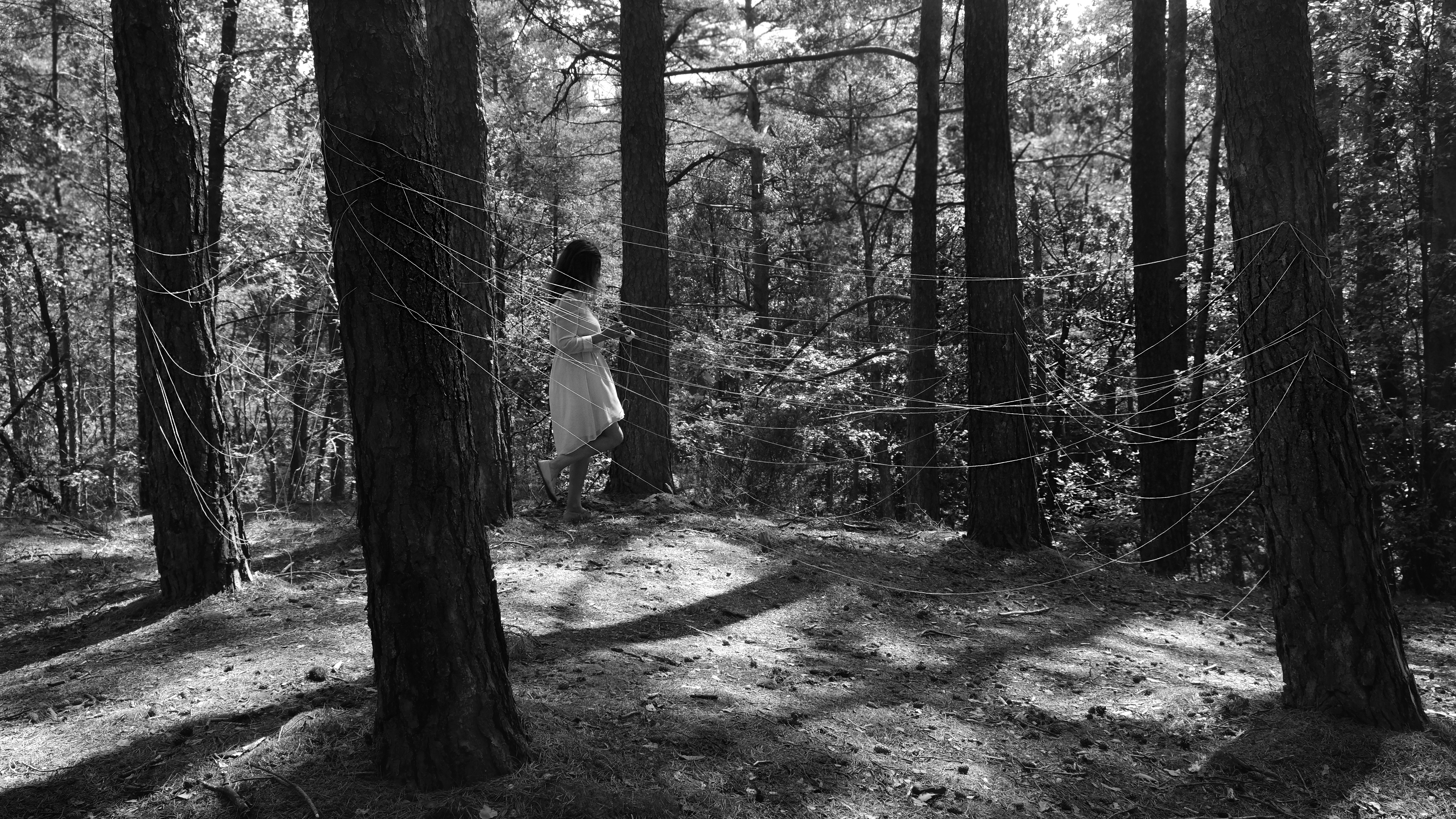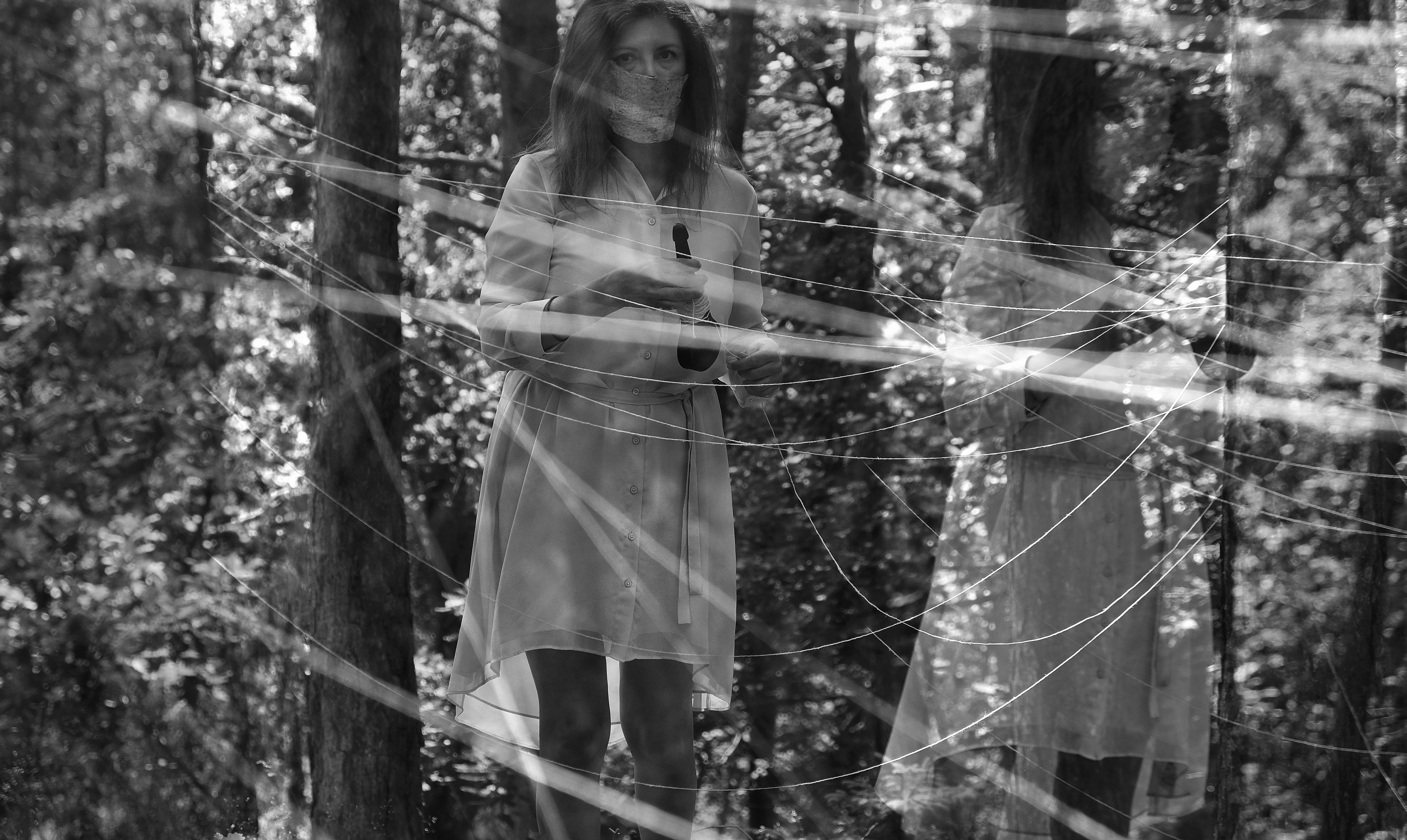 With Hyphae the artists imagine a world where all types of humans and nature forge their duality into a oneness, thereby living in harmony or mutualism. The transformation that happens to the space in the forest during the performance and experience of flow is a metaphor for transmutation and purification. The work suggests dichotomies of isolation and connection, visibility and invisibility.