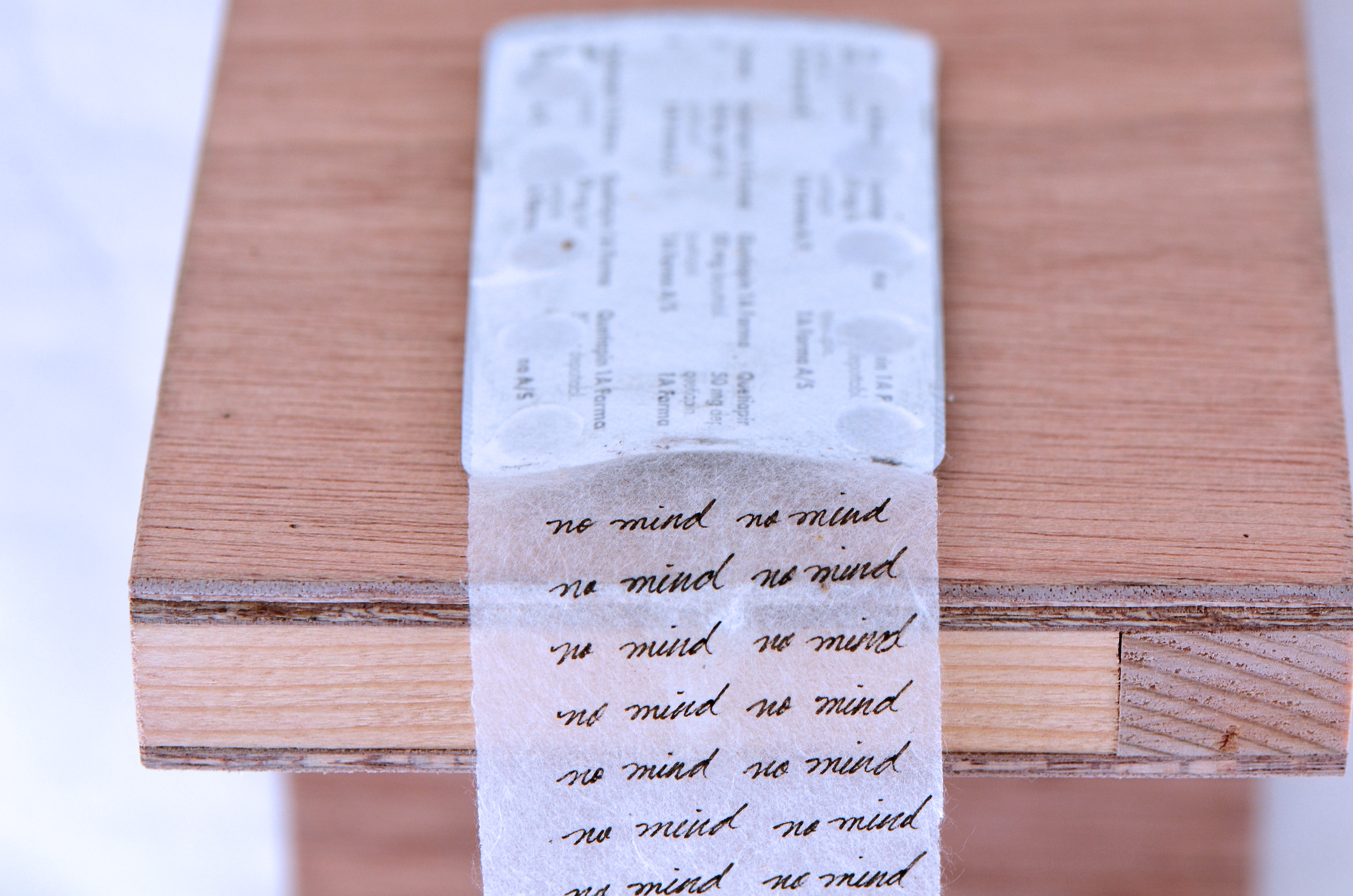 PRESCRIPTIONS (No Mind), series of 18 Artist’s Books, calligraphy, Nepalese paper, medicine strips, 2017